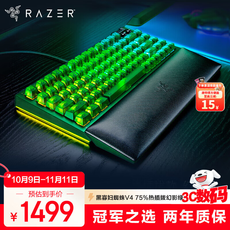 雷蛇(Razer)黑寡妇蜘蛛V4-75%热插拔 幻影绿 GASKET结构 客制化键盘 RGB背光 电竞游戏机械键盘