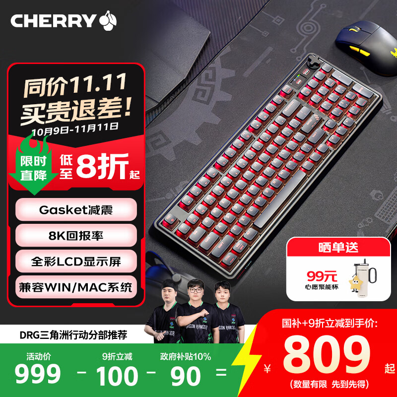 CHERRY樱桃PIXIU98客制化键盘 蓝牙三模无线RGB 热插拔 LCD显示屏 游戏键盘 兼容WIN/MAC 烈焰火 茶轴