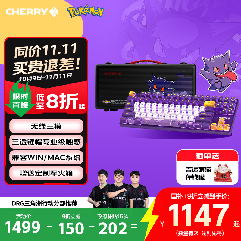 CHERRY樱桃 MX8.2 XAGA 宝可梦键盘 无线键盘 三模机械键盘 三透PBT键帽 兼容MAC系统 耿鬼联名款