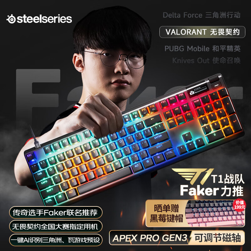 赛睿(SteelSeries)ApexPro Gen3 三代电竞磁轴键盘 游戏有线键盘 RT急停机械键盘 FPS/无畏契约/CSGO/打瓦键盘 104键