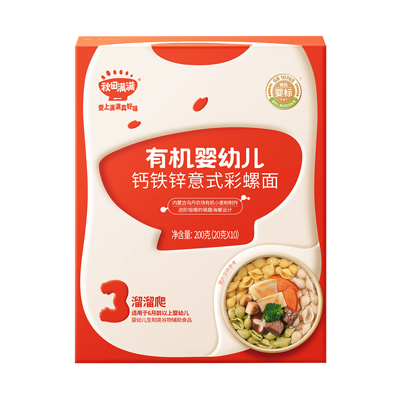 秋田满满 有机婴标认证宝宝辅食营养面条6个月以上婴幼儿意式造型面蝴蝶面