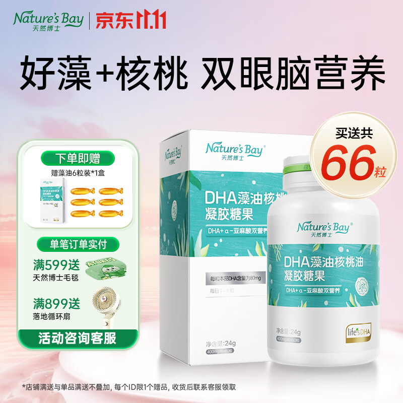 天然博士藻油dha婴儿宝宝专用海藻油婴幼儿孕妇儿童学生成人藻油 升级款:双营养藻油dha1盒装共发66粒
