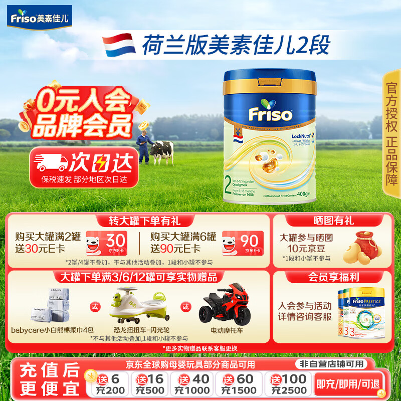 美素佳儿(Friso)【官旗】皇家美素佳儿荷美升级白金版婴幼儿HMO营养成长配方奶粉 【吸收UP】荷美白金2段 400g
