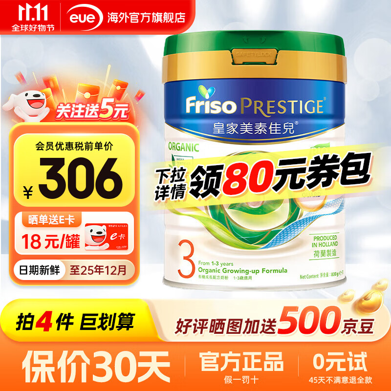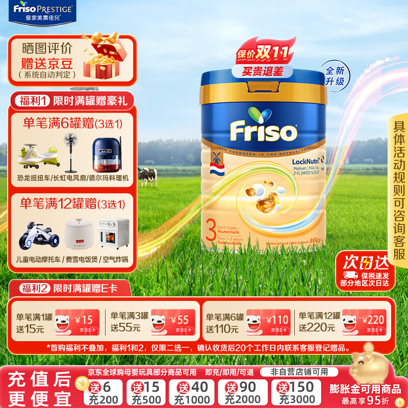 美素佳儿(Friso)【官旗】皇家美素佳儿荷美升级白金版婴幼儿HMO营养成长配方奶粉 【满罐有礼】荷美白金3段 800g