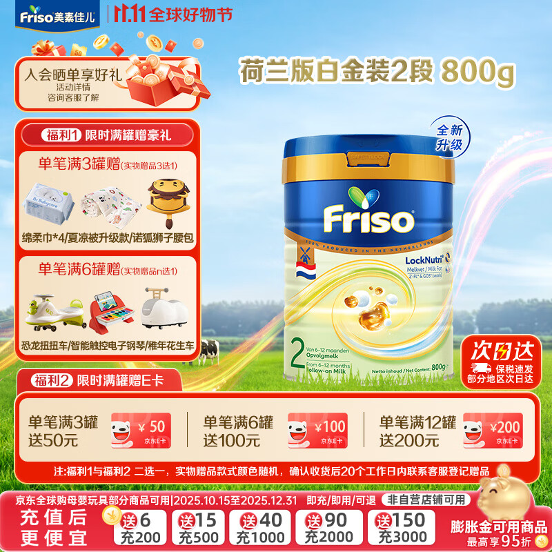 美素佳儿(Friso)皇家美素佳儿荷美升级白金版婴幼儿HMO营养成长配方奶粉 【入会有礼】荷美白金2段800g