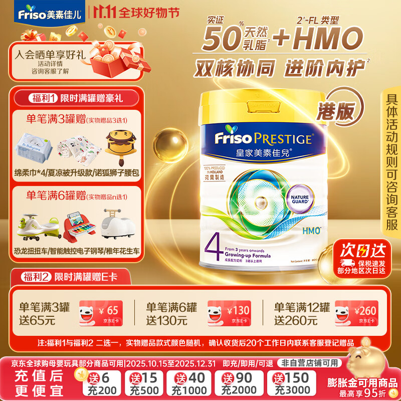 美素佳儿(Friso)港版皇家美素佳儿婴儿配方HMO营养奶粉荷兰原装进口罐装 【集罐有礼】皇家4段800g*1罐