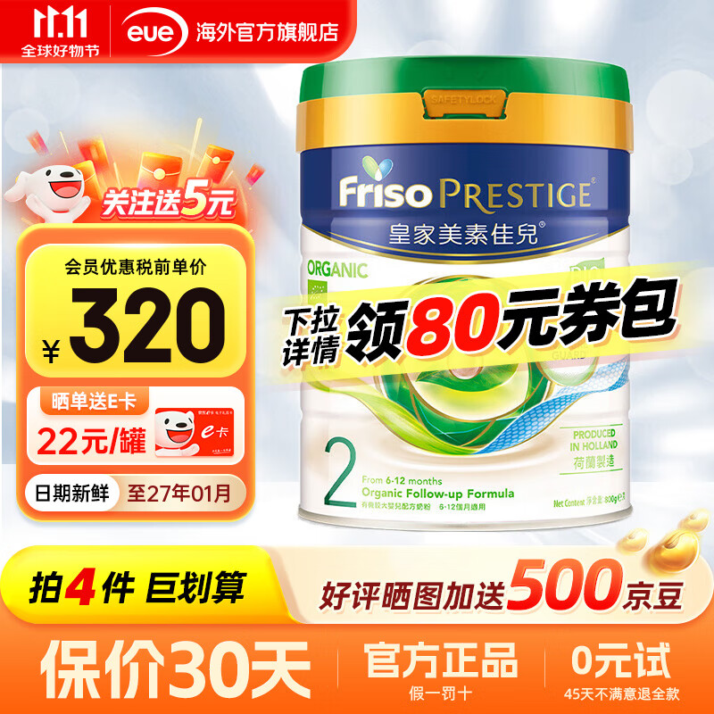 美素佳儿美素有机婴幼儿配方奶粉高营养好吸荷兰进口 美素有机2段 800g