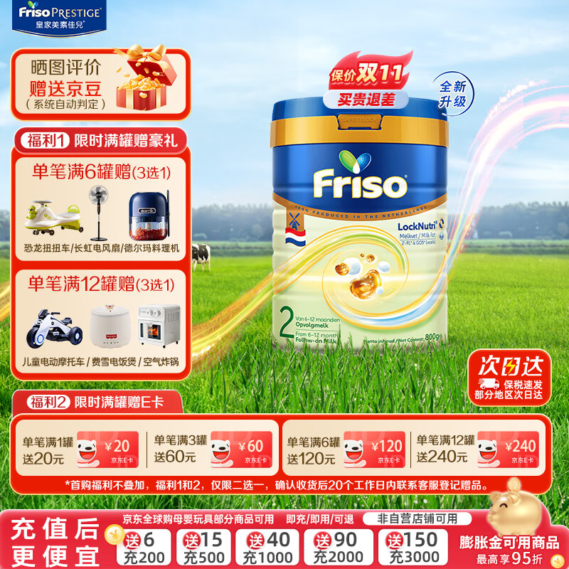 美素佳儿(Friso)【官旗】皇家美素佳儿荷美升级白金版婴幼儿HMO营养成长配方奶粉 【满罐有礼】荷美白金2段 800g