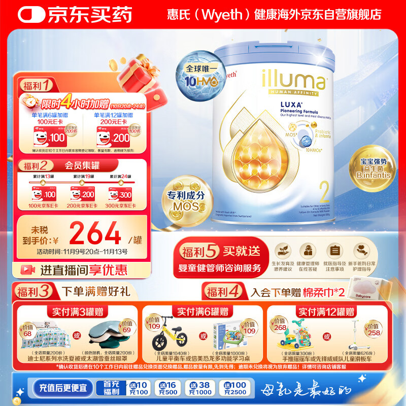 惠氏(Wyeth)启赋未来 10HMO婴幼儿配方奶粉2段(6-12月)800g Luxa 花少好营养