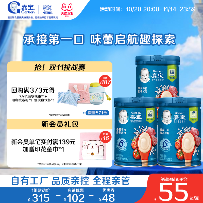 嘉宝(GERBER)番茄牛肉谷物高铁米粉婴幼儿米粉宝宝辅食米糊250g6月+100%真验厂