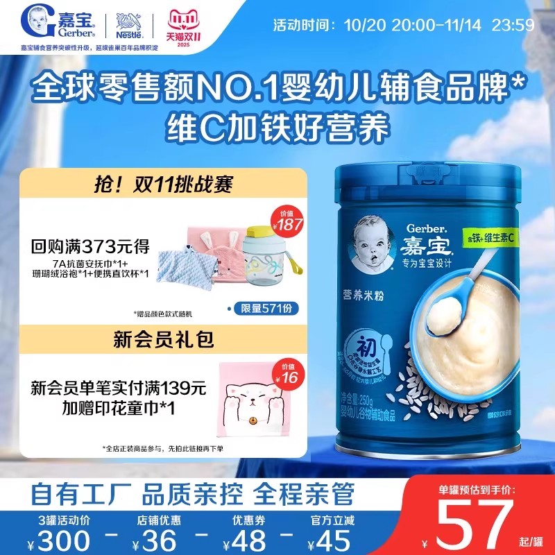 Gerber嘉宝官方旗舰店高铁谷物米粉婴儿宝宝营养辅食米糊250g