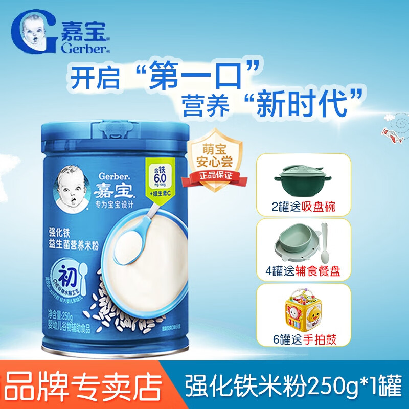 【营养易吸收】嘉宝高铁米粉宝宝益生菌高铁维C婴儿辅食米粉250g 【初尝高铁米粉】原味米粉250g