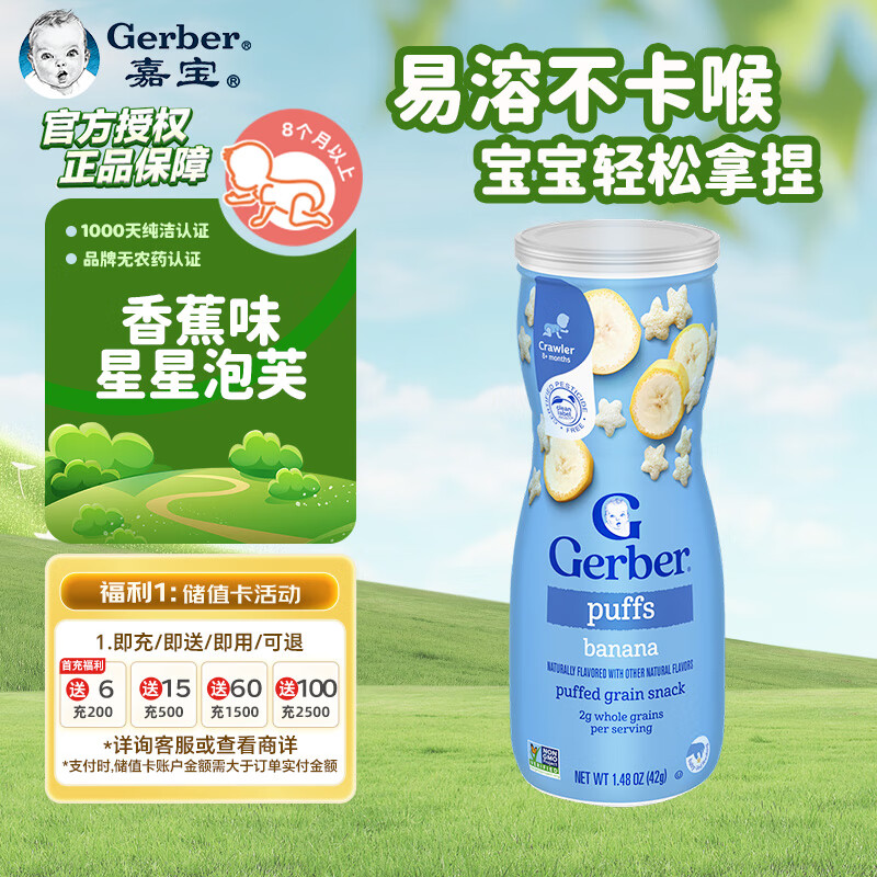 嘉宝(GERBER)星星泡芙香蕉味42g/罐 宝宝辅食零食 三段(8个月以上)原装进口