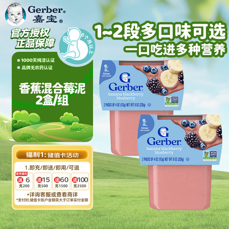 嘉宝(GERBER)婴幼儿辅食 香蕉混合莓泥 二段 6个月以上 113g*2 美国进口