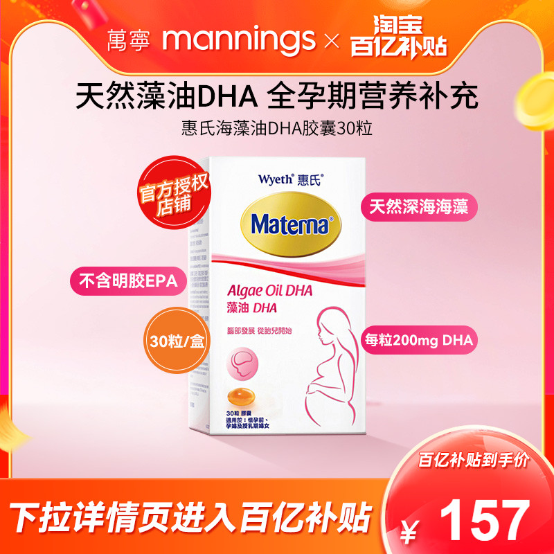 惠氏dha孕妇胶囊孕早中晚期成人海藻油dha备孕哺乳期孕期营养 30粒/盒