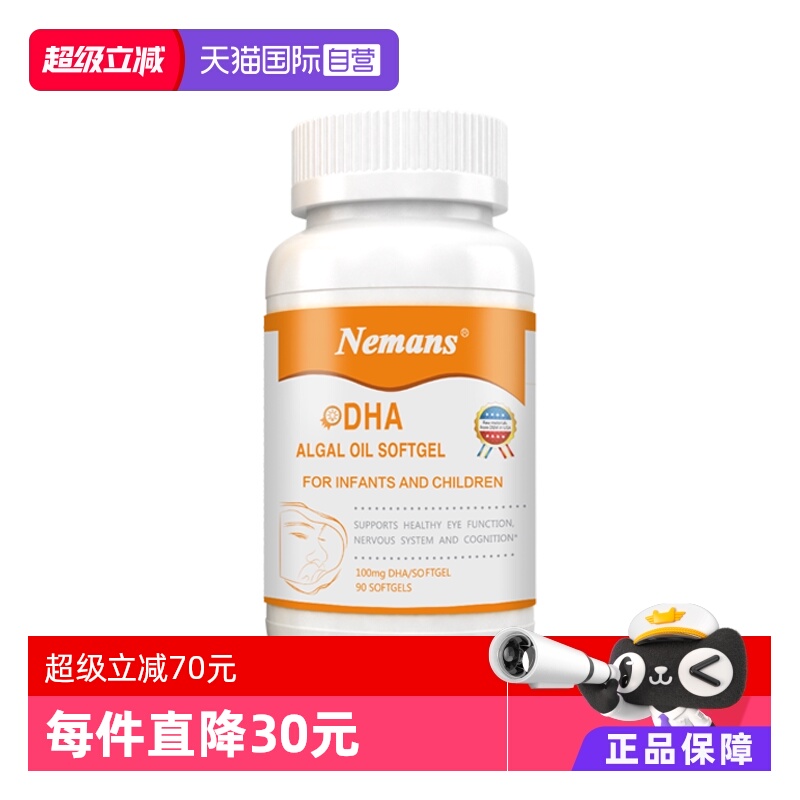 纽曼思(Nemans)支持防伪查询】(原名纽曼斯)新西兰进口藻油DHA婴幼儿儿童可用 90粒*1瓶