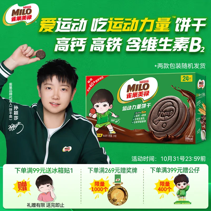 雀巢美禄(Nestle Milo)运动力量夹心饼干经典巧克力味216g莎莎同款两款包装随机发