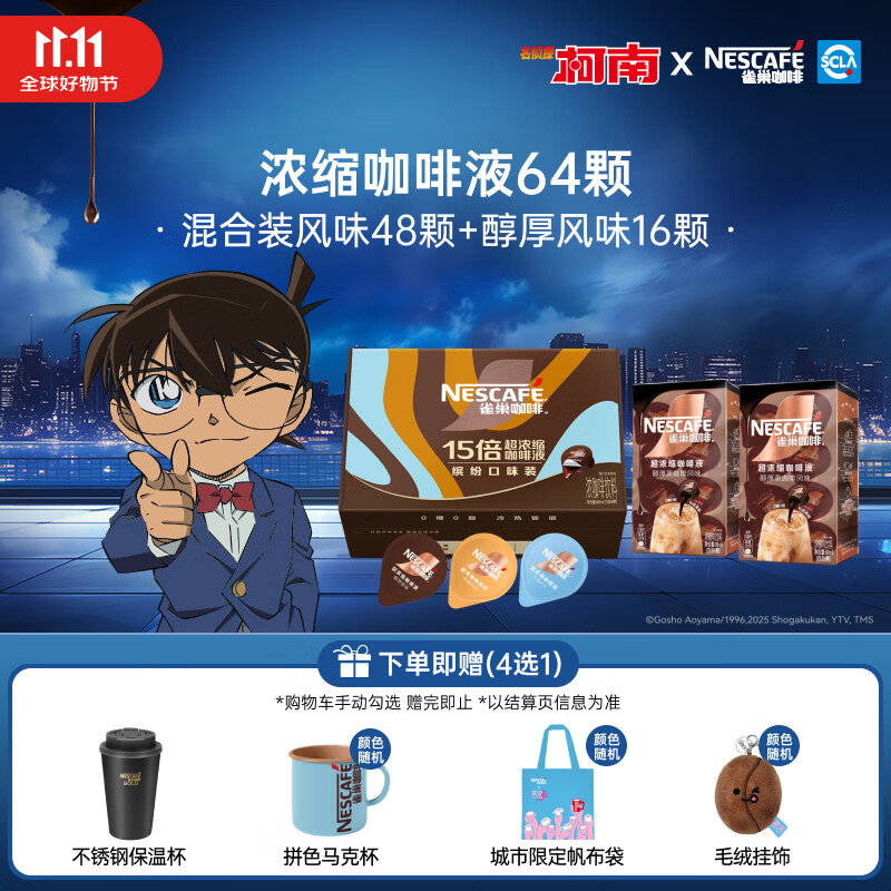 雀巢【柯南联名】咖啡液 超浓黑咖啡 0糖0脂咖啡胶囊10ml/颗 混合口味10ml*64颗 效期26年5月