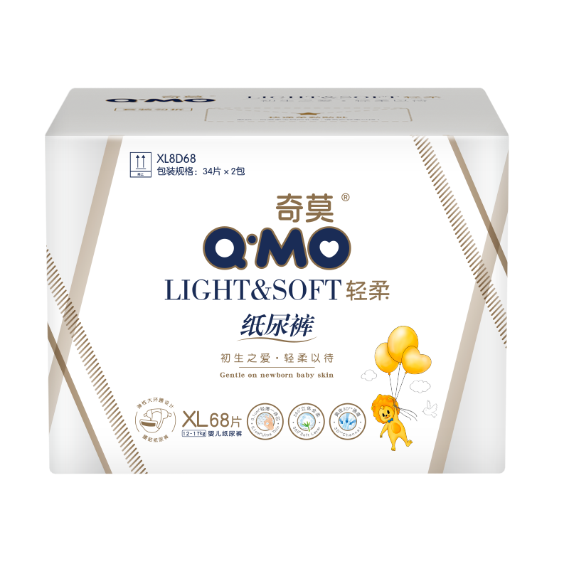 奇莫 轻柔纸尿裤XL码 尿不湿 68片 1包