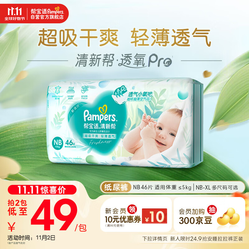 帮宝适 清新帮透氧Pro NB码 纸尿裤 46片
