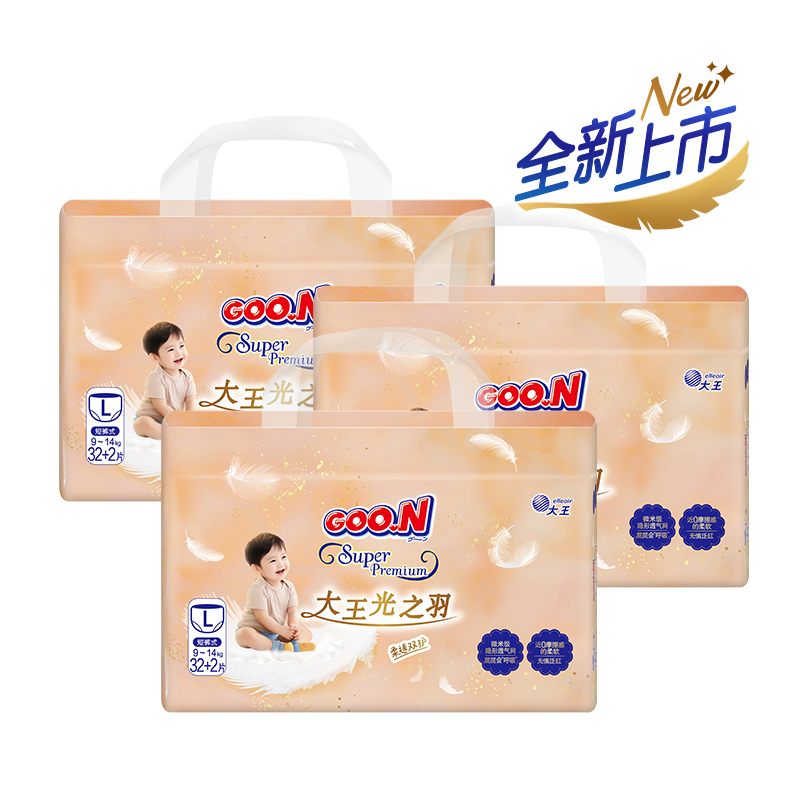 【备用】大王光之羽短裤式纸尿裤3包婴儿透气尿不湿 【重磅新品】光之羽 拉拉裤 L34片 3包