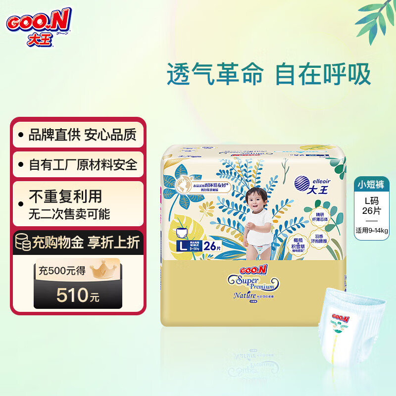大王(GOO.N)光羽致本之源尿不湿超薄干爽透气宝宝小短裤拉拉裤婴儿纸尿裤 拉拉裤L26片(9-14kg)