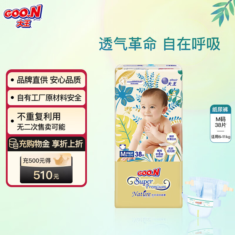 大王(GOO.N)光羽致本之源尿不湿超薄干爽透气宝宝小短裤拉拉裤婴儿纸尿裤 纸尿裤M38片(6-11kg)