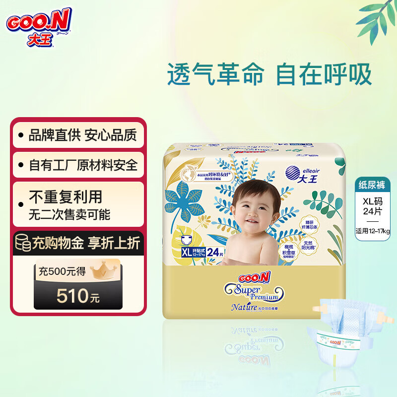 大王(GOO.N)【品牌直供 安心品质】光羽致本之源纸尿裤婴儿尿不湿宝宝纸尿裤 拉拉裤 XL24片(12-17kg)