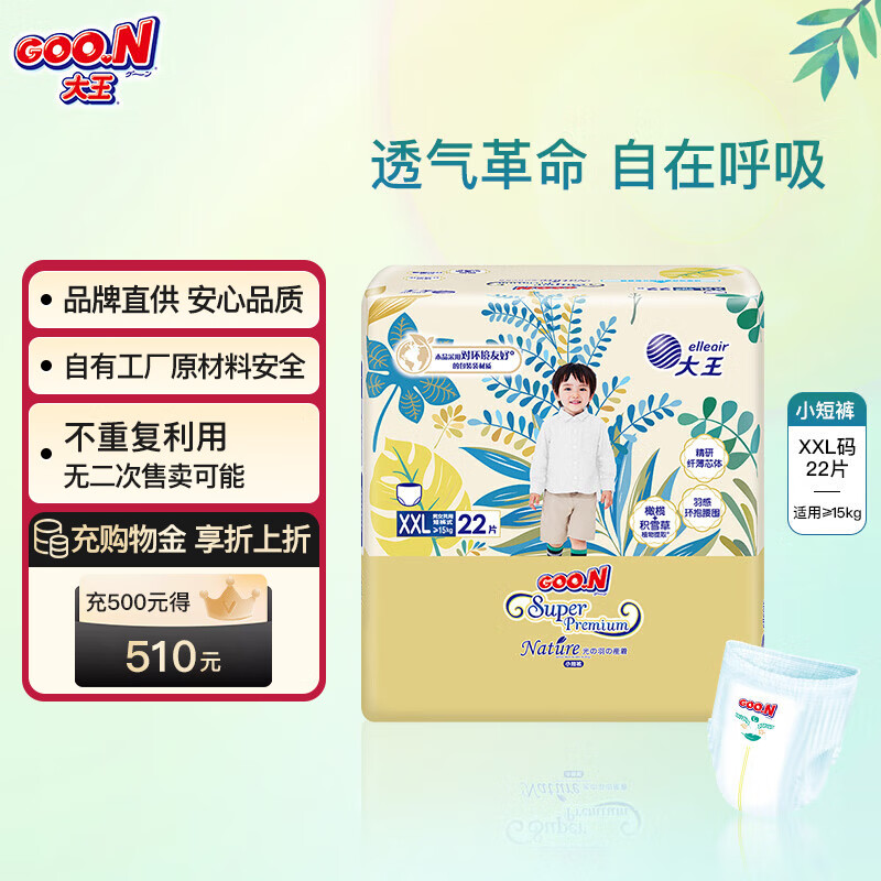大王(GOO.N)光羽致本之源尿不湿超薄干爽透气宝宝小短裤拉拉裤婴儿纸尿裤 拉拉裤XXL22片(15kg以上)