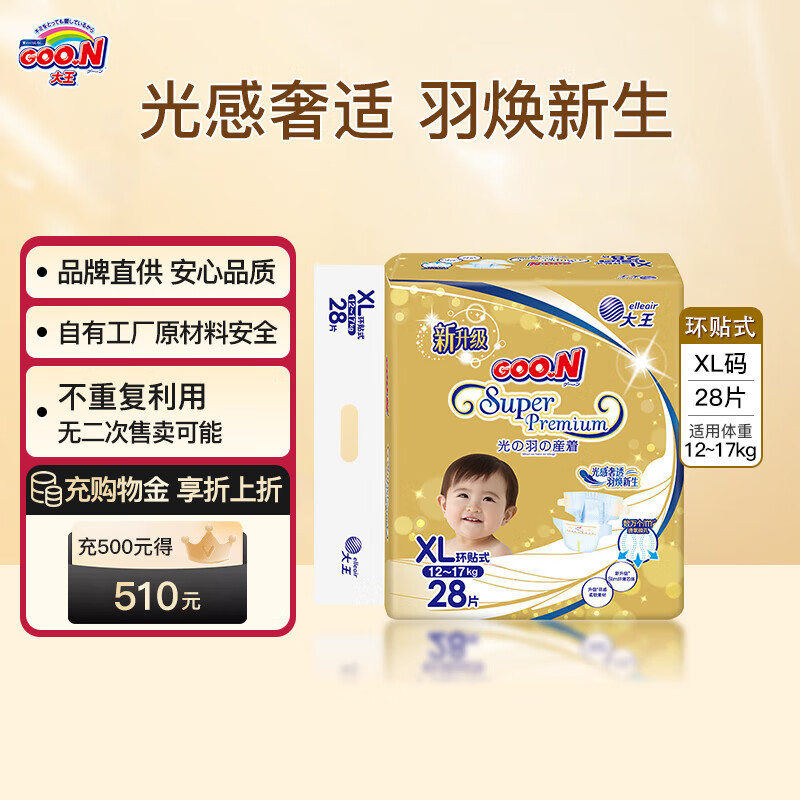 大王(GOO.N)光羽纸尿裤裤超薄干爽透气宝宝尿不湿 纸尿裤XL28(12-17kg)(26.11到期)
