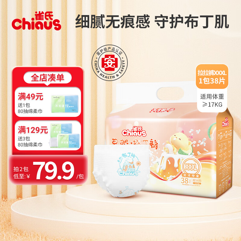 雀氏(Chiaus)纸尿裤副布丁裤拉拉裤尿不湿超薄透气国产【品牌直营 安心购】 拉拉裤-XXXL码-38片