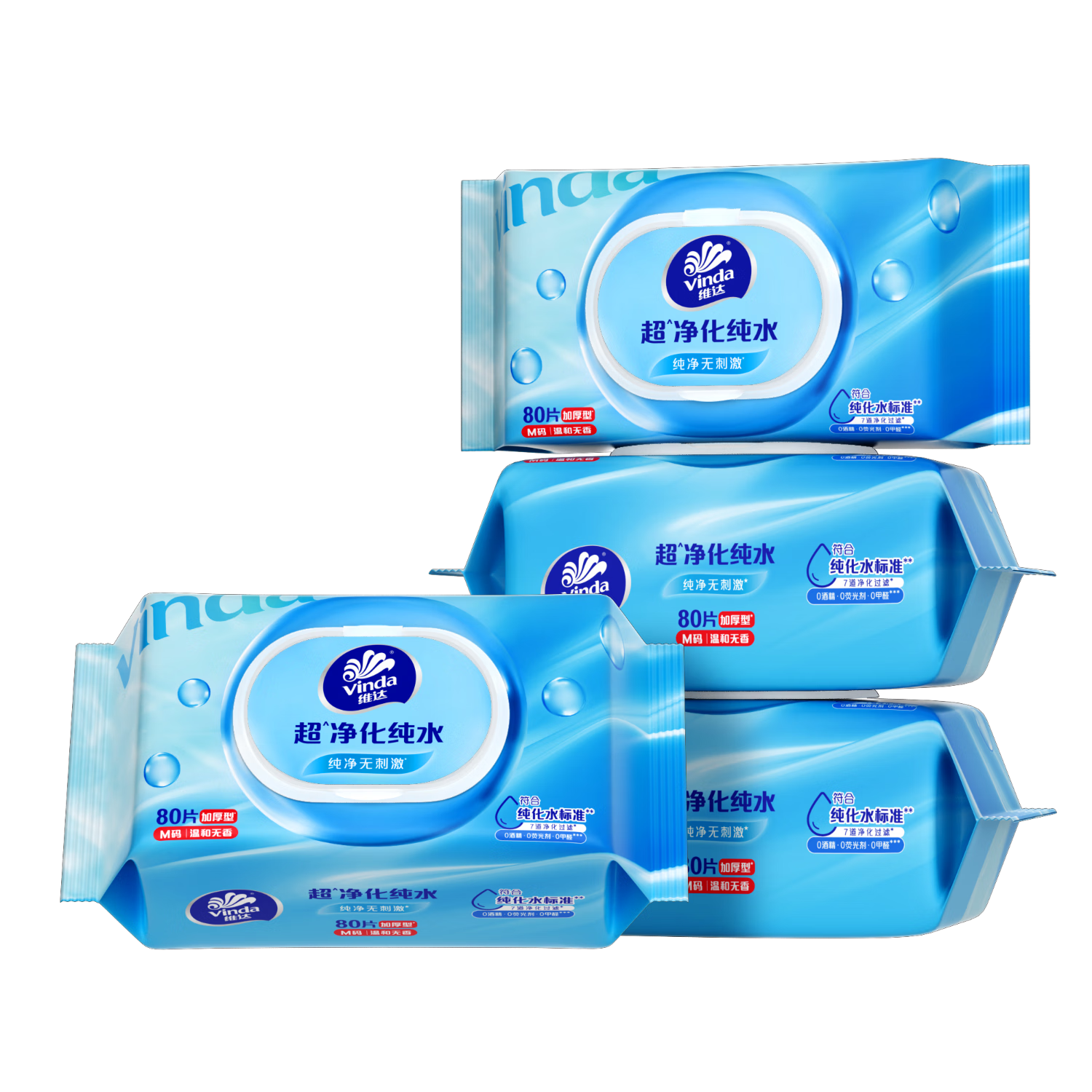 维达(Vinda)超净化纯水湿巾 80片*4包 婴儿湿巾手口可用 湿巾大包