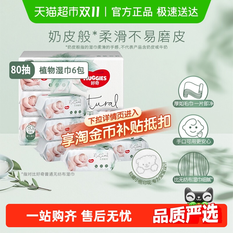 好奇小森林奶皮湿巾80抽*6包*3超厚倍柔铂金装升级婴儿湿巾