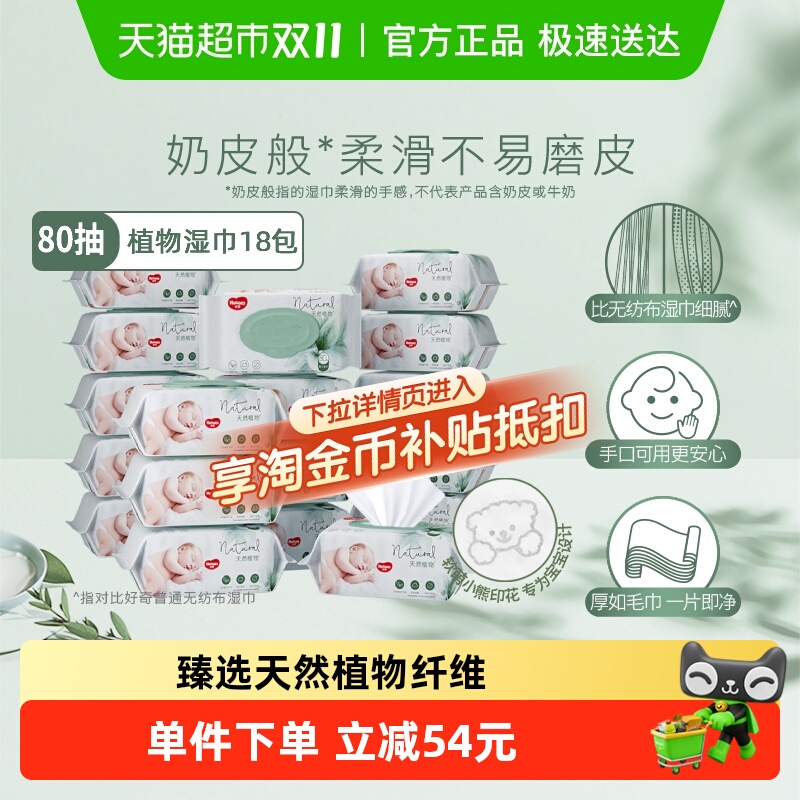 好奇小森林奶皮湿巾80抽18包铂金升级加厚11%婴儿屁湿纸巾湿巾纸