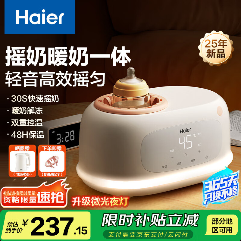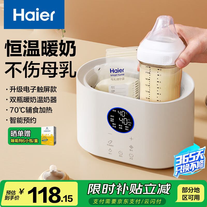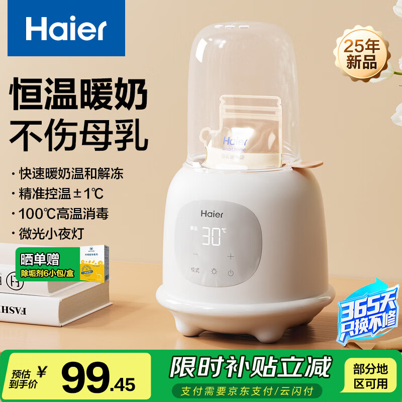 海尔(Haier)温奶器婴儿暖奶器奶瓶消毒器二合一恒温保温母乳热奶解冻定时加热