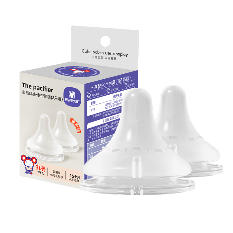 安配通用宽口奶嘴母乳口感 15个月以上2个装(适合好孩子/日康/贝亲)
