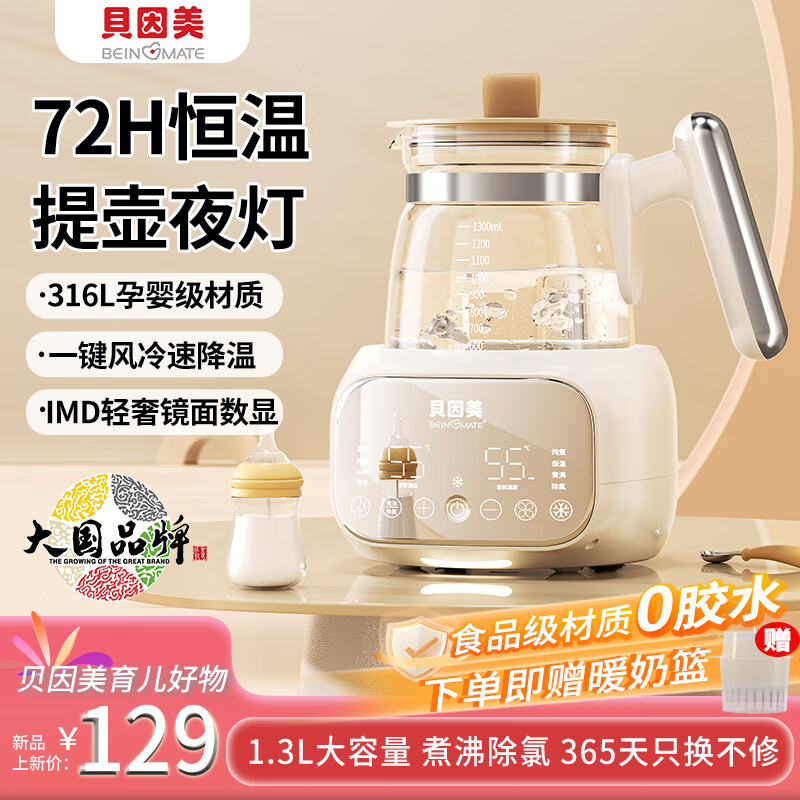 贝因美恒温水壶1.3L婴儿调奶器温热暖奶器家用冲奶粉电热烧水壶