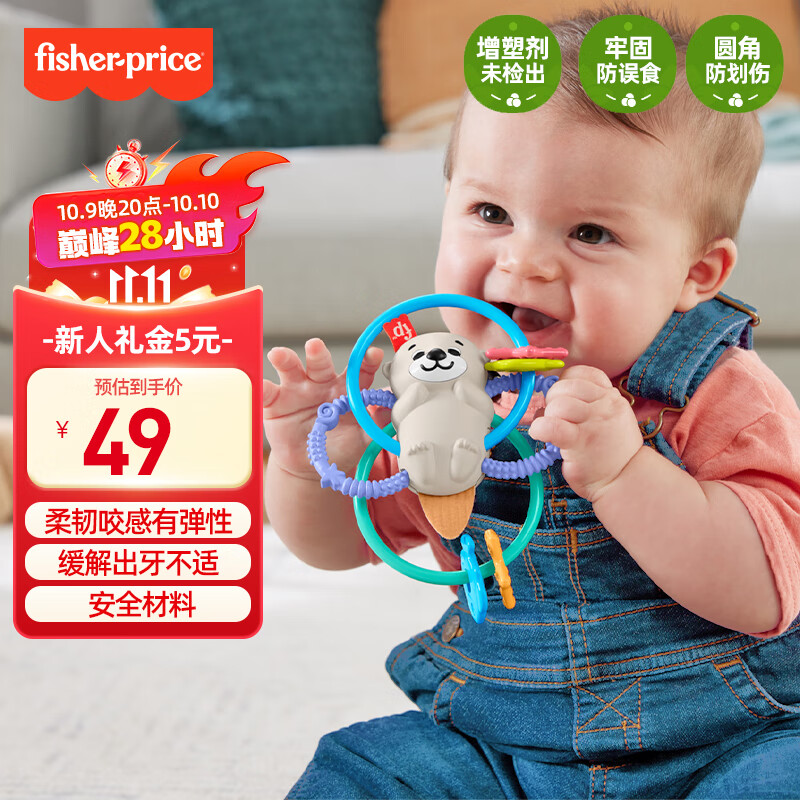 费雪(Fisher-Price)生日礼物新生儿3-6-12个月抓握牙胶-费雪抓握小水獭HJW12