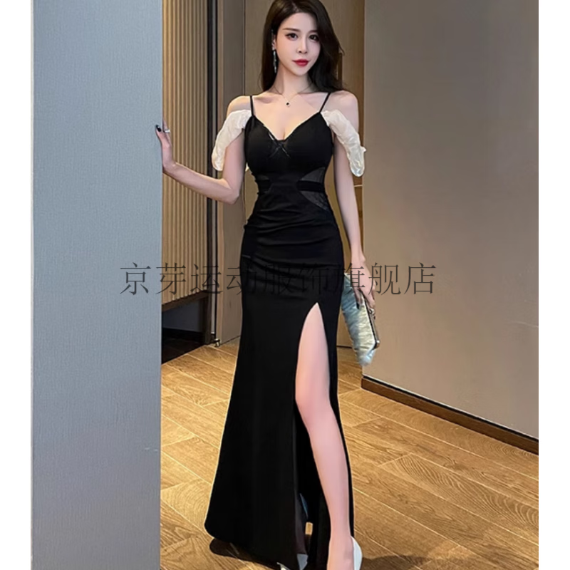 糜鸿夜总会性感深V晚礼服优雅感连衣裙洗浴技师夜场上班工作服70707 7079黑色 M