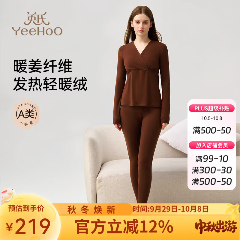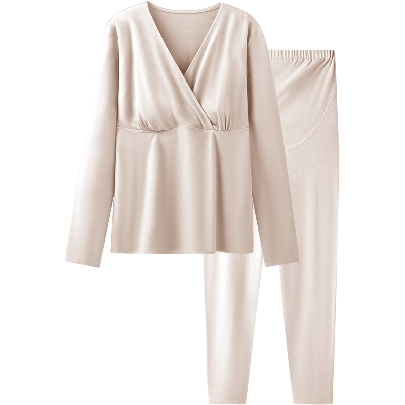 英氏秋冬V领孕妇保暖内衣套装美雅碧暖姜秋衣秋裤套装哺乳睡衣月子服 褐色(双面磨毛 适合0°C-10°C) 175(XXL)