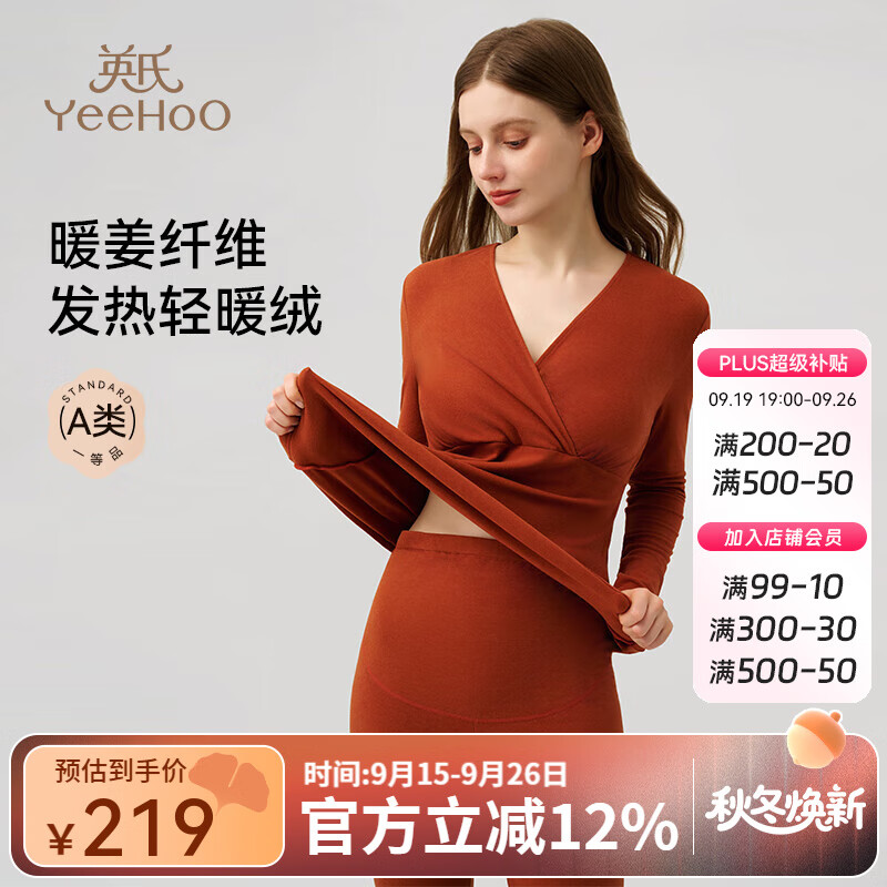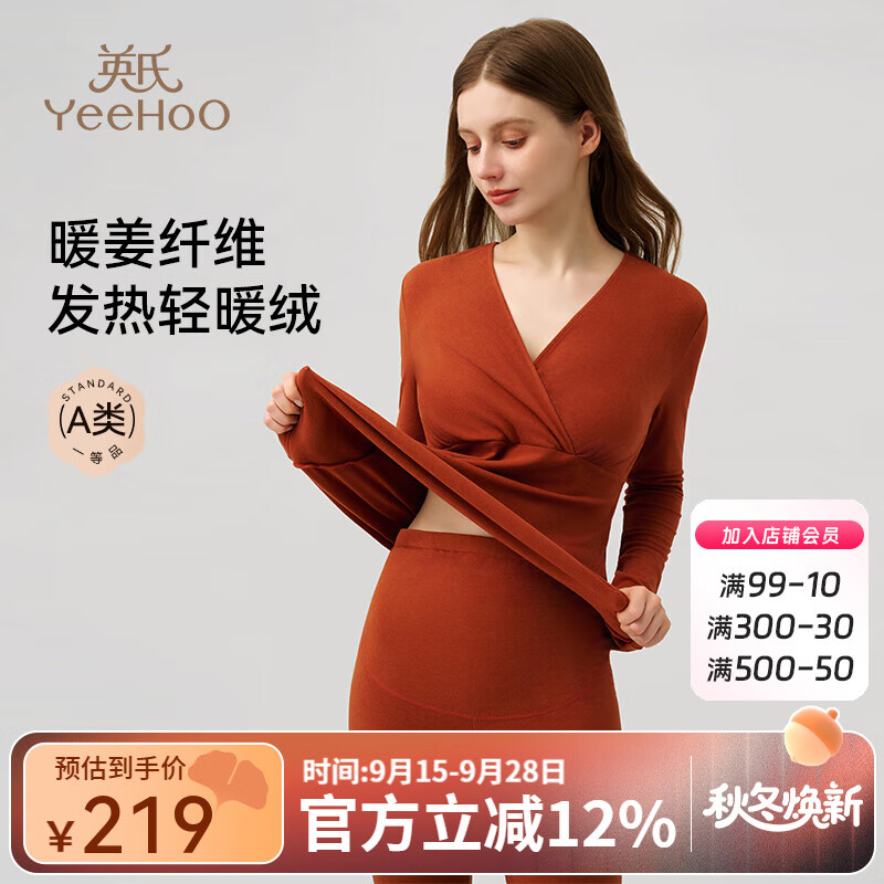 英氏秋冬V领孕妇套装美雅碧暖姜秋衣秋裤套装哺乳睡衣月子服轻暖不闷 橘色(双面磨毛) 165(L)