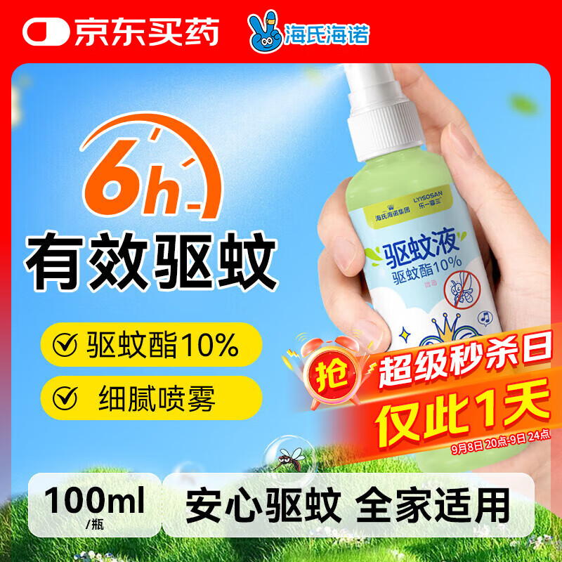 海氏海诺 驱蚊液驱蚊喷雾户外便携式喷雾防叮咬驱蚊水基孔肯雅热100ml