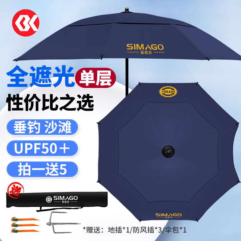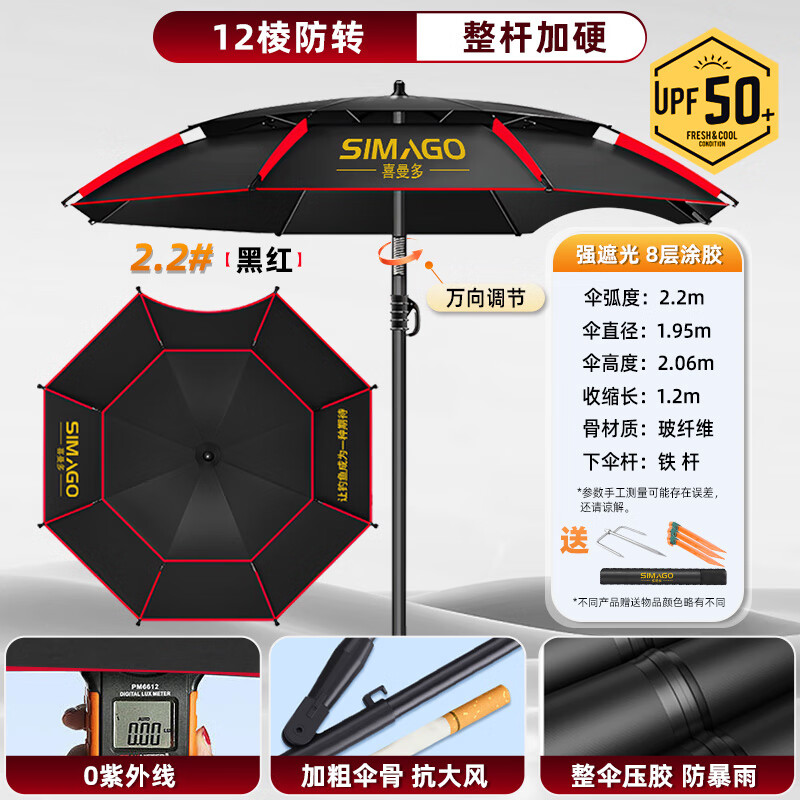 百亿补贴:SIMAGO喜曼多钓鱼伞万向大钓伞防风防暴雨伞钓鱼渔具加厚防晒户外遮阳伞 2.2米 双层加厚加硬防暴晒UPF50+