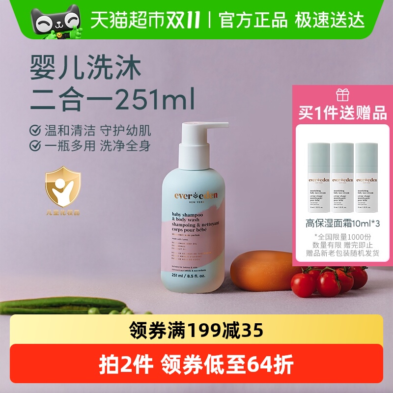 下拉Evereden安唯伊婴儿洗沐二合一宝宝沐浴露洗发水低泡