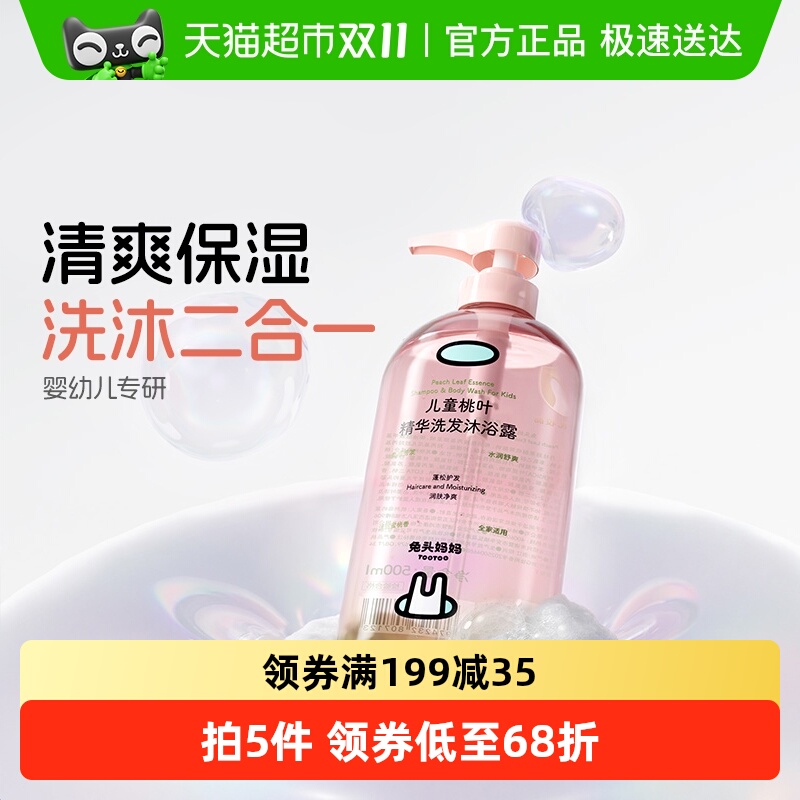 兔头妈妈儿童沐浴露洗发二合一沐浴露桃叶精华温和净肤试用装