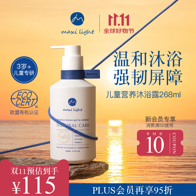奇麦思英国Maxilight儿童洗发沐浴露宝宝洗护二合一不刺激268ml