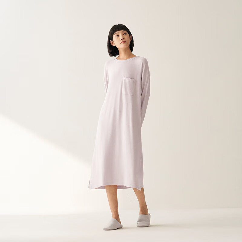 无印良品(MUJI)女式 柔软针织家居连衣裙 长袖睡裙女宽松家居服秋季 FD33CC5A 烟熏粉色 S -M (160/84A)