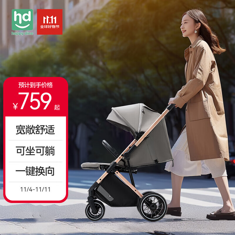 小龙哈彼(Happy dino)婴儿车0-3岁可坐可躺轻便折叠婴儿推车LC756魔方Pro雅致灰