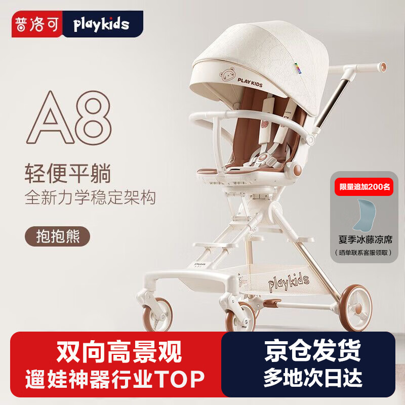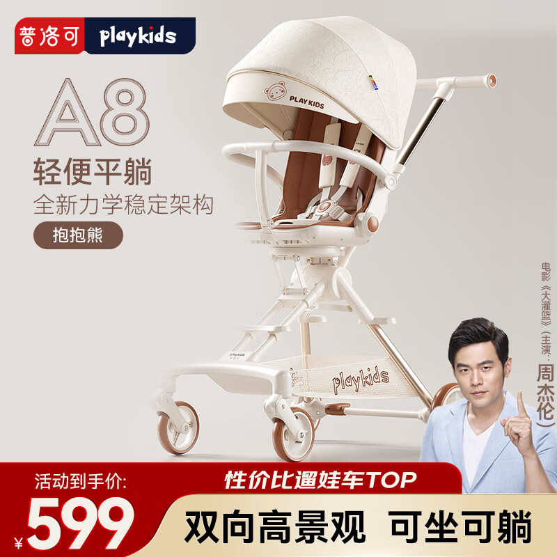 playkids普洛可A8婴儿推车遛娃神器0-6岁用折叠可坐可躺带减震轻便高景观 【爆款-京仓发货】A8抱抱熊