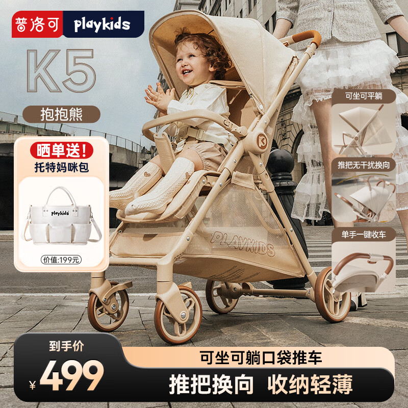 普洛可(PLAYKIDS)K5婴儿推车新生轻便双向可坐可躺四轮推车婴儿车 抱抱熊